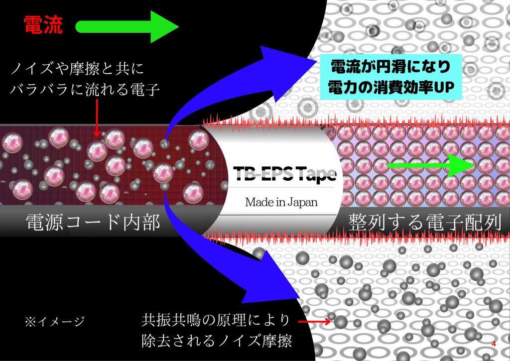 電力供給元のケーブルに取り付ける事により、電子の流れを円滑化し抵抗を減少させます。